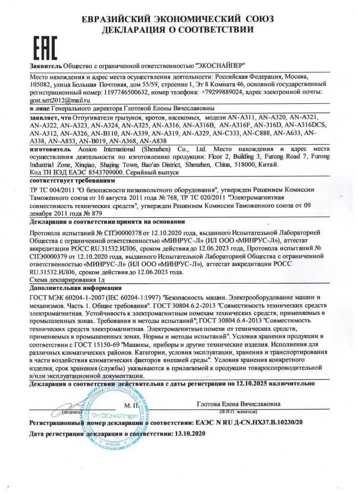 Достоинства отпугивателя ЭкоСнайпер AB-AN110